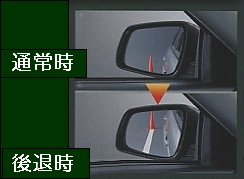●シフトを「R」レンジに入れると自動的に左側ドアミラーが下方に向き、駐車時に左後方の確認をサポートします。